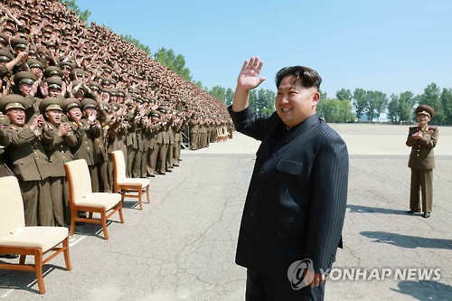 | △ 북한, 대남·해외 공작원 모아 '정찰일꾼대회' 개최 (서울=연합뉴스) 북한이 인민군 대남·해외 공작업무 종사자들을 모아 독려하는 '정찰일꾼대회'를 처음으로 개최해 김정은 국방위원회 제1위원장이 참가자들과 기념사진을 찍었다고 노동신문이 18일 보도했다. 김정은 제1위원장이 박수를 치는 참가자들에게 손을 흔들고 있다. 2015.6.18 nkphoto@yna.co.kr |