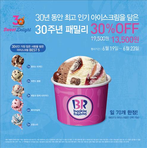 배스킨라빈스, 30주년 기념 30% 할인