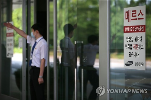 | △ 병원 출입 통제하는 보안요원 (서울=연합뉴스) 중동호흡기증후군(메르스) 확산 여파로 부분적인 병원 폐쇄조치가 내려진 서울 일원동 삼성서울병원에서 18일 오전 보안요원이 일반인의 출입을 통제하고 있다. |