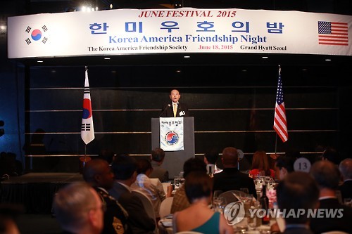 (서울=연합뉴스) 김효정 기자 = 한국과 미국의 친선을 다지기 위한 양국 인사들의 '한미 우호의 밤' 행사가 18일 오후 서울 하얏트호텔에서 열렸다.