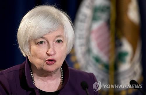 | △ 재닛 옐런 미국 연방준비제도(연준) 의장이 17일(현지시각) 워싱턴에서 연방공개시장위원회(FOMC) 정례 회의가 끝난 뒤 기자회견을 하고 있다 |