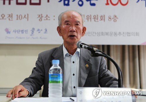 | △ 유영복 귀환국군용사회 회장. 사진은 유 회장이 지난 17일 서울 중구 국가인권위원회에서 열린 '국군포로 65주년 억류감금 김정은 국제형사재판소(ICC) 제소 기자회견'에서 북한 억류 당시 경험을 증언하는 모습이다. 북한인권단체 물망초 등은 당시 김정은 북한 국방위원회 제1위원장이 60여년간 국군포로를 불법으로 억류·감금하면서 강제노역을 시켰다며 김 위원장을 '계속되는 전쟁범죄자'로 ICC에 제소할 계획을 밝혔다. 2015.6.22.<<연합뉴스DB>> |