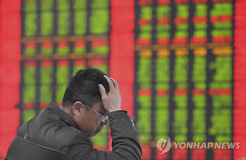 | △ '산' 높으면 '골'도 깊지… (AP=연합뉴스) 19일(현지시간) 중국 주가의 폭락 사태 속에 안후이(安徽)성 푸양(阜陽)의 증권사 객장에서 주식 시세를 바라보던 한 투자자가 머리에 손을 댄 채 낙담한 표정이다. 상하이종합지수는 오후 3시 23분 현재 7.52% 떨어진 3,122.56로, 지난 2008년의 최대 낙폭 기록에 근접했다. 중국 증시의 이날 폭락은 지난 12개월 동안 상하이지수가 60% 이상 급등한 것과 관련, 중국 당국이 현지 3대 증권사의 신용거래에 대해 제재를 취하면서 우려가 확산됐기 때문. bulls@yna.co.kr An investor holds his head as he monitors stock prices at a brokerage house in Fuyang in central China's Anhui province Monday, Jan. 19, 2015. Chinese shares plunged 6.3 percent Monday after the country's securities regulator imposed margin trading curbs on several major brokerages, a sign that authorities are trying to rein in the market's big gains. (AP Photo) CHINA OUT |