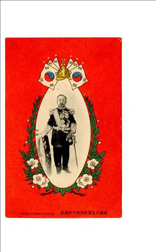 이번에 처음으로 소개하는 태극기 관련 유물 중에는 1900년대 초 대한제국의 상징물로 제작된 엽서가 있다. 이에서는 근대화한 복식과 훈장을 착용한 고종 황제 어진을 태극기와 이화문양을 넣어 디자인했다.