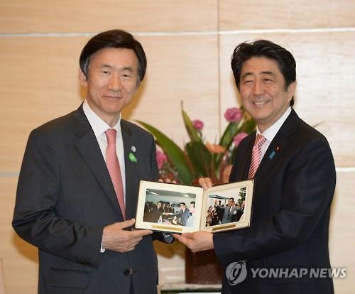 (서울=연합뉴스) 김효정 기자 = 윤병세 외교부 장관이 22일 아베 신조(安倍晉三) 일본 총리에게 선친 아베 신타로(安倍晋太郞) 전 외무상의 30여년 전 방한 당시 사진을 선물해 눈길을 끌었다.