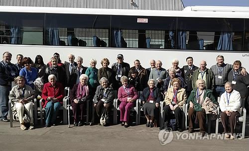 | △ 남아공 한국전 참전용사들의 출신부대 방문 (요하네스버그=연합뉴스) 류일형 특파원 = 6.25 한국전쟁 64주년을 하루 앞둔 지난해 6월 24일 남아프리카공화국 한국전 참전용사와 미망인들이 '남아공 한국전 참전용사 출신부대 방문여행' 출발에 앞서 프리토리아 스와트코프 공군기지 공군박물관(SAAF) 앞에서 기념촬영을 하고 있다. 뒷 줄 가운데 모자를 쓴 사람과 그 오른쪽에 선 사람이 마이크 물러 장군 부부다. 2014.6.25 photo@yna.co.kr (끝) |