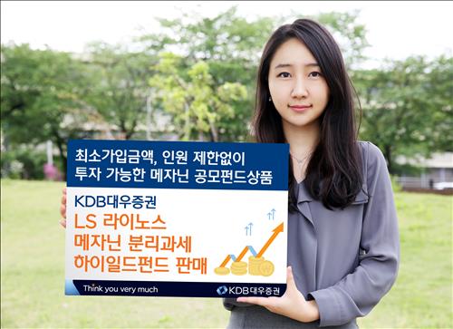 (서울=연합뉴스) 국기헌 기자 = KDB대우증권은 23일 'LS 라이노스 메자닌 분리과세 하이일드펀드'를 판매한다고 23일 밝혔다.