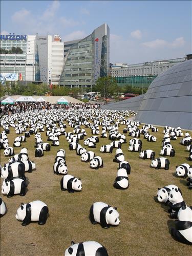 재활용 종이를 활용해 만든 판다 1천600마리를 프랑스 파리부터 네덜란드, 이탈리아, 스위스 등 8개국을 돌며 100여 차례의 전시를 이어왔다.