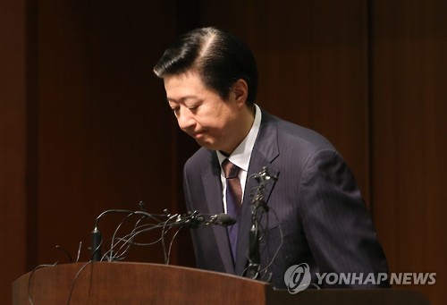 | △ 고개 숙인 송재훈 삼성서울병원장 (서울=연합뉴스) 임헌정 기자 = 송재훈 삼성서울병원장이 23일 오전 서울 서초동 삼성전자 서초사옥에서 열린 중동호흡기증후군(메르스) 사태와 관련한 삼성그룹의 대국민 사과 기자회견에서 고개숙여 인사하고 있다. kane@yna.co.kr |
