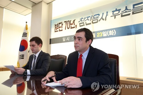 | △ '흥남철수' 주역 美참전용사 증손자 벤 포니 (서울=연합뉴스) 박동주 기자 = 6·25 전쟁이 한창이던 1950년 12월 흥남철수작전을 주도한 에드워드 포니 미 해군 대령의 증손자 벤 포니 씨가 23일 오후 서울 용산 전쟁기념관에서 열린 참전용사 후손들이 본 남북한 통일전망 세미나에서 발표하고 있다. 2015.6.23 pdj6635@yna.co.kr |