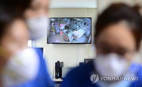 | △ 모니터에 비춰진 음압치료시설 내부 (서울=연합뉴스) 윤동진 기자 = 지난 19일 오전 메르스 환자가 격리 치료 중인 서울 중구 국립중앙의료원 중환자실에 설치된 모니터에서 음압치료시설 내부가 보이고 있다. |