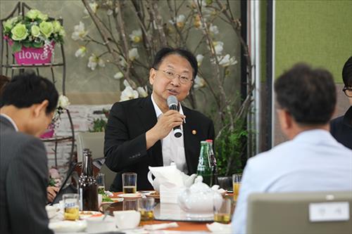 | △ 유일호 국토교통부 장관이 23일 기자간담회에서 발언하고 있다. 2015.6.23<<국토교통부>> |