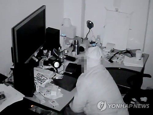 | △ 빈 사무실 전문 털이범 검거 (서울=연합뉴스) 서울 강서경찰서는 서울 서남부권 일대를 돌며 빈 사무실 148곳을 턴 혐의(상습절도)로 조모(52)씨를 구속했다고 23일 밝혔다. 사진은 조씨가 한 사무실에서 컴퓨터 부품을 훔치는 장면이 포착된 폐쇄(CC)TV 화면. 2015.6.23 << 서울 강서경찰서 제공 >> photo@yna.co.kr |