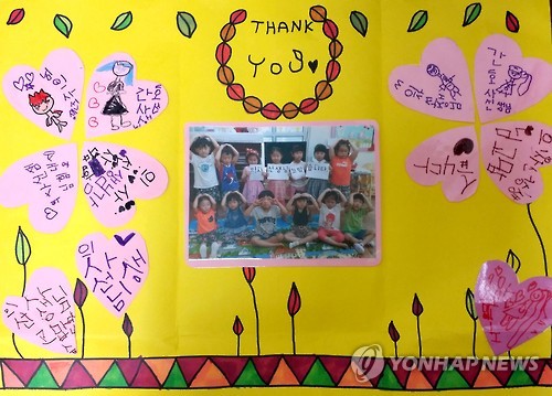 세류시립어린이집에서 보낸 편지에는 아이들이 삐뚤삐뚤한 글씨로 적은 "아픈 사람을 돌봐주셔서 감사드려요. 파이팅", "치료해주셔서 정말 고맙습니다. 사랑해요" 등 응원문구로 가득했다.