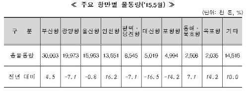 (세종=연합뉴스) 성혜미 기자 = 5월 전국 무역항에서 처리한 항만물동량은 총 1억1천841만t으로 작년 같은 기간보다 0.7% 증가했다.