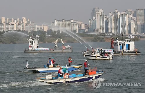| △ 한강 녹조류 방제훈련 (연합뉴스 자료사진) |