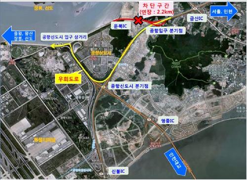 교통 통제 기간 장봉도, 신도, 을왕, 왕산 방향으로 가는 차량은 공항신도시 분기점을 이용하면 된다.
