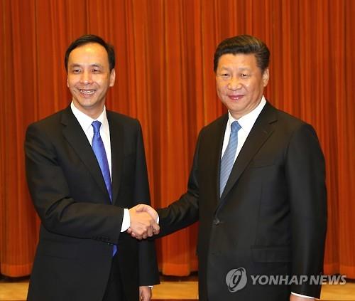 | △ 지난달 4일 베이징(北京) 인민대회당에서 열린 '국공(國共) 수뇌회담'에서 회동한 시진핑(習近平) 중국 국가주석 겸 중국공산당 총서기와 주리룬(朱立倫) 대만 국민당 주석. |