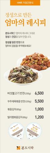 (서울=연합뉴스) 이도연 기자 = 본도시락은 가정간편식(HMR) 시장의 확대에 맞춰 인기 반찬 메뉴를 가정간편식 제품으로 출시한다고 25일 밝혔다.