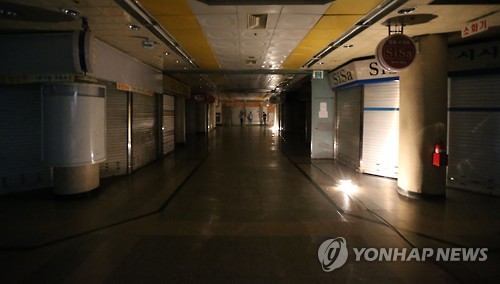 160여 개 점포 규모의 지하상가 전체에 불이 꺼져 암흑이 되면서 시민들의 통행도 통제되고 있다.