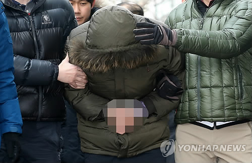 | △ 지난 1월 서울 서초동의 한 아파트에서 '서초 세모녀 살인사건' 피의자 강모씨가 현장검증을 위해 걸어가고 있다. (연합뉴스 자료사진) |
