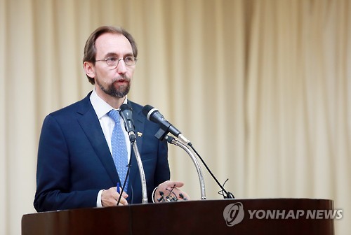 (서울=연합뉴스) 이봉석 기자 = 방한 중인 유엔의 인권분야 수장인 자이드 라아드 알 후세인 유엔 인권최고대표가 25일 억류 중인 우리 국민 2명에 무기징역을 선고한 북한을 강도 높게 비난했다.