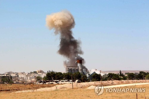 | △ (터키 EPA=연합뉴스) IS가 25일 시리아 북부 코바니에서 차량폭탄 공격한 현장을 터키 쪽에서 촬영. |