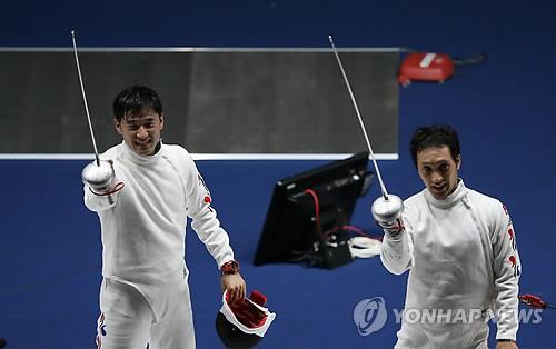 | △ 한국 펜싱 남자 에페 국가대표 박경두(오른쪽) (연합뉴스 자료사진) |