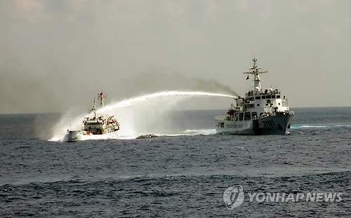 | △ 중국 해안경비정이 베트남 어선에 물대포를 쏘는 모습(AP=연합뉴스 자료사진) |