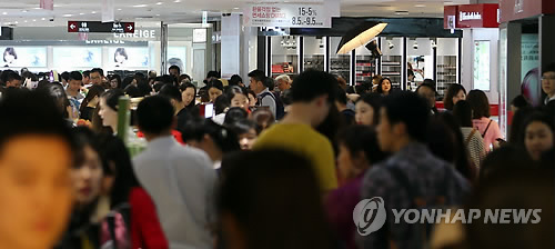 | △ 서울 시내 한 면세점이 내외국인 쇼핑객들로 붐비고 있다.(연합뉴스 자료사진) |