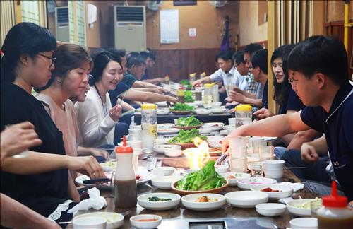 | △ 삼겹살 회식하는 국제종합기계 직원들 <<연합뉴스 DB>> |