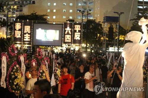 | △ 홍콩서 톈안먼 사태 26주년 기념 촛불 집회 (홍콩=연합뉴스) 최현석 특파원 = 중국 톈안먼(天安門) 사태 26주년을 맞은 4일 저녁 홍콩에서는 톈안먼 시위 진압의 희생자들을 추모하는 대규모 촛불집회가 열렸다. 집회 참가자들은 '6·4 톈안먼 사태를 재평가하라'(平反六四) 등 구호를 외쳤다. 2015.6.5 harrison@yna.co.kr |