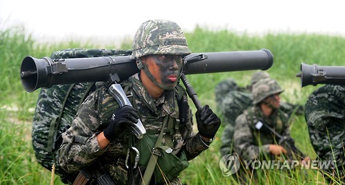 | △ 훈련 참가하고자 전역 미룬 해병대 병장 (서울=연합뉴스) 해병대 제2사단 38대대 양혁준(23) 병장이 해안 상륙훈련을 하고 있다. 양 병장은 해군·해병대가 지난 25일부터 다음 달 5일까지 실시하는 연대급 합동상륙훈련에 참가하고자 전역을 열흘 미뤘다. 2015.6.29 << 해병대 제공 >> photo@yna.co.kr |