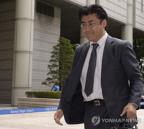 | △ 산케이 전 서울지국장 속행공판 (서울 교도=연합뉴스) 박근혜 대통령의 명예를 훼손한 혐의로 기소된 산케이신문 가토 다쓰야 전 서울지국장이 29일 오후 속행공판을 위해 서초동 서울중앙지법으로 출두하고 있다. 2015.6.29 photo@yna.co.kr |