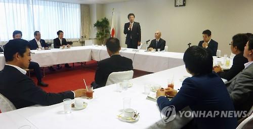 | △ 언론통제 발언이 나온 25일의 자민당 소장파 의원 모임(교도.연합뉴스.자료사진) |
