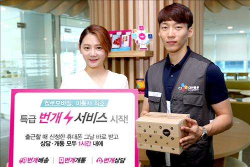 (서울=연합뉴스) 현윤경 기자 = CJ헬로비전[037560]이 자사 알뜰폰 브랜드인 헬로모바일 고객의 편의를 높이기 위해 업계 최초로 신청 당일에 휴대전화를 배송하는 서비스를 선보인다. 최근 유통업계에서 번지고 있는 배송 전쟁이 통신업계로 확산하는 신호탄으로 작용할지 주목된다.