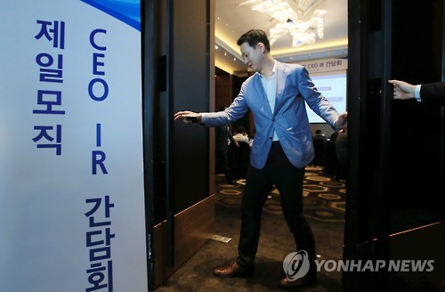(서울=연합뉴스) 옥철 기자 = 제일모직[028260]과 삼성물산[000830] 최고경영자(CEO)들이 30일 여의도 콘래드호텔에서 열린 제일모직 긴급 IR(기업설명회)에 총출동했다.