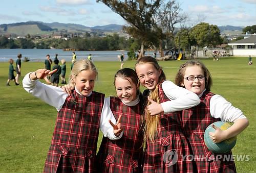 뉴질랜드 타우랑가 세인트 메리스 초등학교 학생들(연합뉴스 자료사진)