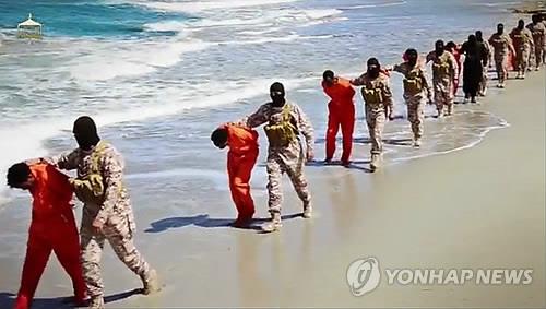 | △ 지난 4월 공개된 IS의 에티오피아 기독교인 참수 모습(AP=연합뉴스 자료사진) |