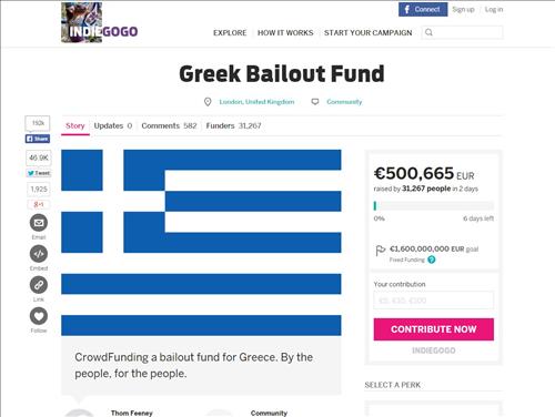 1일 크라우드펀딩 사이트 '인디고고'에 따르면 영국 런던에서 사는 톰 피니(29)가 개설한 '그리스 구제 기금' 캠페인에 오전 11시30분 현재 모두 3만1천 명 이상이 참여했다.