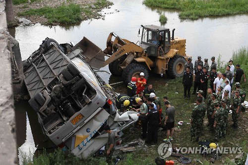 중국 지안서 한국 공무원 탑승버스 추락…10명 사망(종합3보)