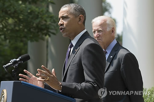 | △ 오바마, '미-쿠바 국교 정상화' 선언 (워싱턴 EPA=연합뉴스) 버락 오바마 미국 대통령(왼쪽)이 1일(현지시간) 워싱턴D.C. 백악관 로즈가든에서 쿠바와의 국교 정상화를 공식 선언하는 성명을 발표하고 있다. 양국 정상은 대사관 재개설에 합의하는 내용을 담은 서한을 이날 오전 교환, 1961년 1월3일 쿠바와 단교한 이래 54년 6개월여 만에 적대적 관계를 청산하고 외교관계를 정식으로 복원하게 됐다. 2010596@yna.co.kr |