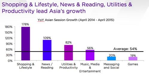 이 같은 현상은 아시아인들이 전통적인 게임이나 오락 기능을 넘어선 목적으로 앱을 사용하는 데 적응해간다는 의미라고 플러리는 평가했다.