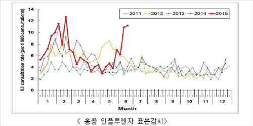 2일 보건복지부 질병관리본부의 자료에 따르면 홍콩에서 발생한 계절인플루엔자(A/H3N2) 의사환자 수는 23주(5월 31일∼6월 6일) 기준 외래환자 1천명당 6.2명에서 25주(6월 14일∼6월 20일)에는 11.2명으로 급격히 증가했다.