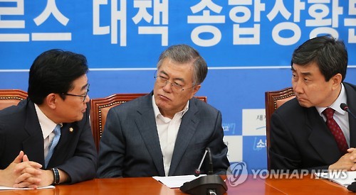 | △ '성완종리스트' 수사결과 대책논의하는 야당 (서울=연합뉴스) 진성철 기자 = 새정치민주연합 문재인 대표(가운데)와 이종걸 원내대표(오른쪽), 전병헌 친박게이트대책위원장이 2일 국회에서 검찰의 '성완종 리스트' 수사결과 발표에 대한 대책 마련을 위해 열린 긴급 최고위원회의에서 논의하고 있다. zjin@yna.co.kr |