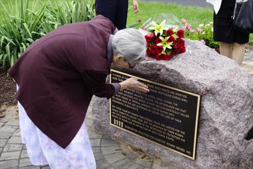 김 할머니는 2일(현지시간) 미국 버지니아 주 페어팩스카운티 정부청사 뒤쪽에 조성된 일본군위안부 기림비를 찾아 헌화하고 나서 이같이 말했다.