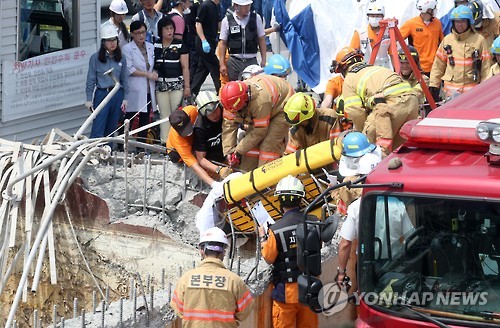 | △ 사고현장에서 수습되는 시신 (울산=연합뉴스) 김용태 기자 = 3일 오전 울산시 남구 한화케미칼 울산 2공장에서 폭발사고로 사상자가 발생했다. 소방대원들이 사고 현장에서 시신을 끌어올리고 있다. |