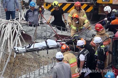 | △ 폭발사고 희생자 시신 수습하는 소방 (울산=연합뉴스) 김용태 기자 = 3일 오전 울산시 남구 한화케미칼 울산 2공장 폐수처리장 저장조에서 폭발사고가 발생해 6명이 숨졌다. 사고현장에서 소방대원들이 사망자의 시신을 수습하고 있다. |