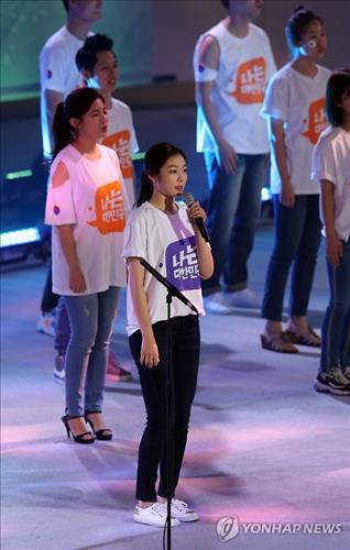 김연아는 KBS 1TV 광복 70년 국민대합창 '나는 대한민국'의 촬영을 위해 이날 연아주니어, 연아합창단, 리처드 용재오닐, 윤하, 오렌지 캬라멜, 방탄소년단, 러블리즈 등과 함께 빙상 위에서 특별 공연을 펼쳤다.