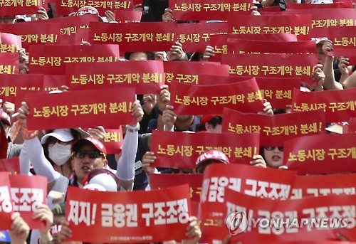 양대노총 공공부문과 제조부문은 이날 오후 서울 도심에서 대규모 집회를 열어 정부의 노동 정책을 비판했다.